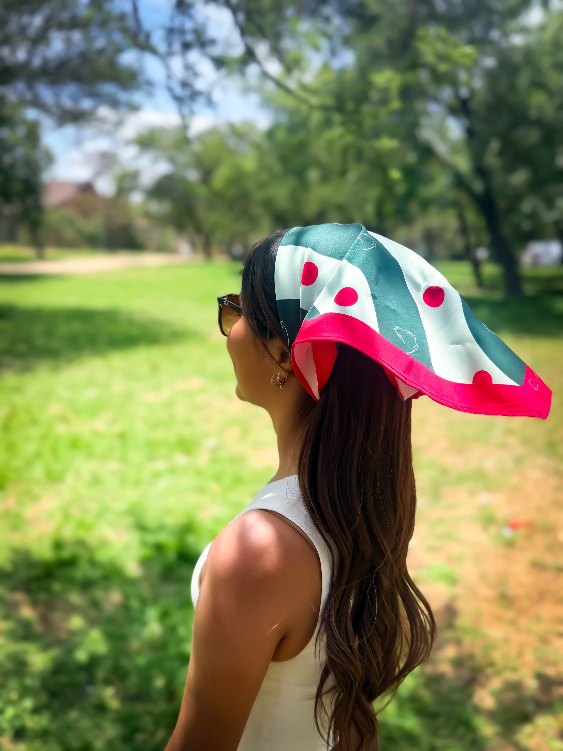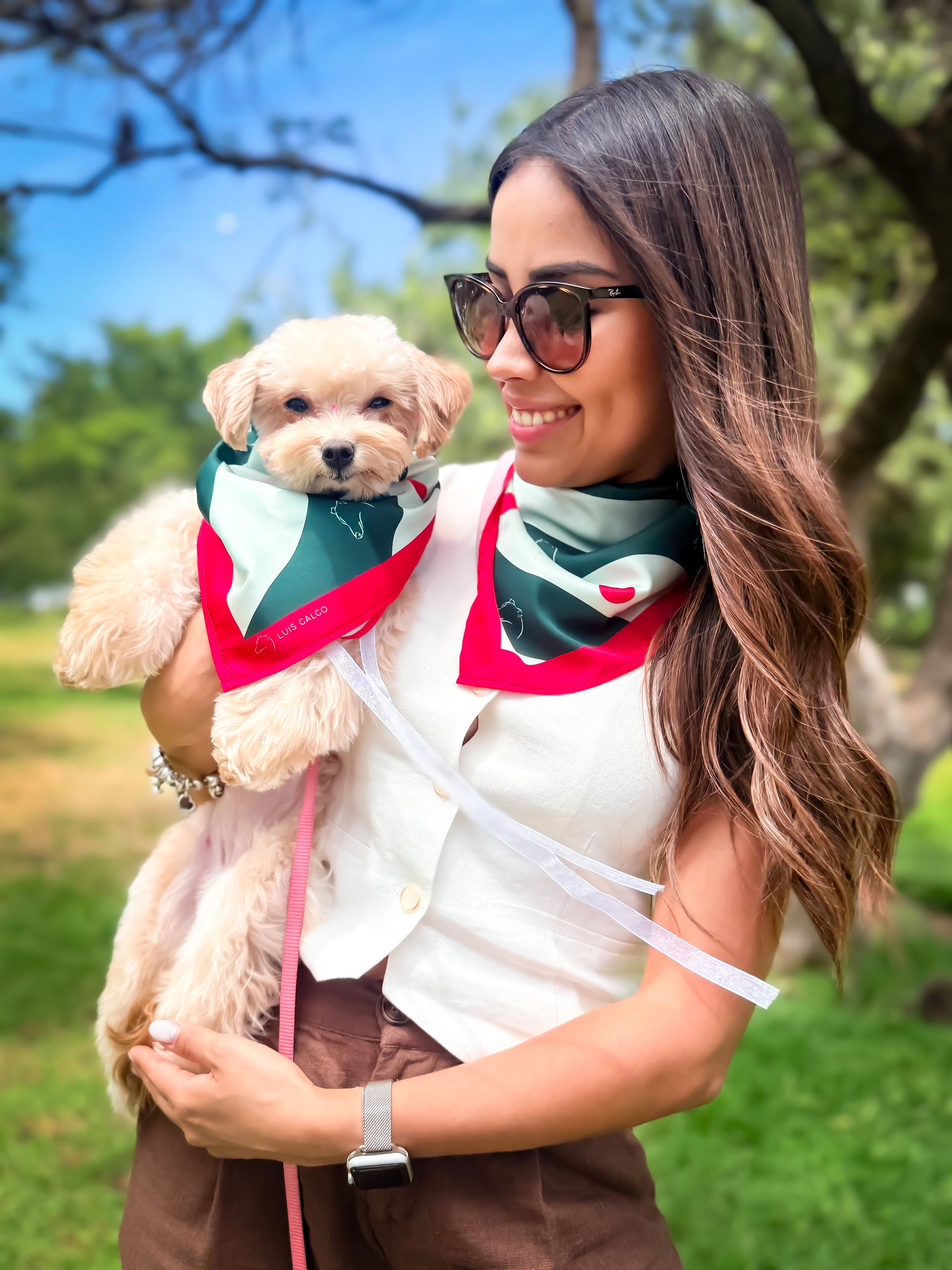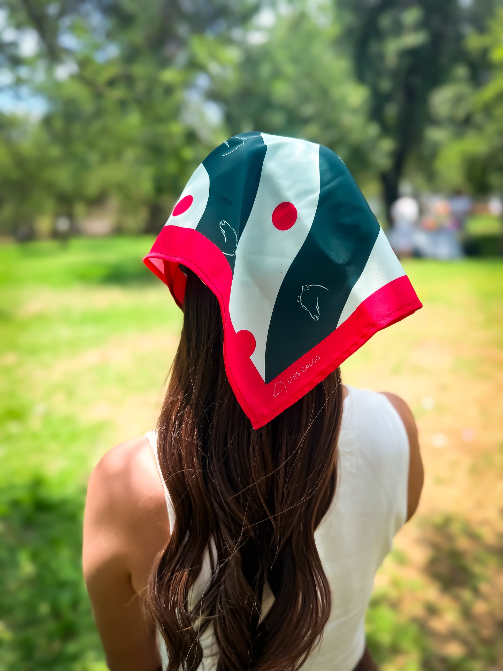 Dale un toque de color y sofisticación a tu verano con el nuevo pañuelo Bosque Austral de Luis Galgo. Este hermoso pañuelo de seda sintética (vegan) no solo se siente como una caricia, sino que tiene el diseño más lindo de la temporada: un patrón en verde bosque profundo, menta y rojo encendido.