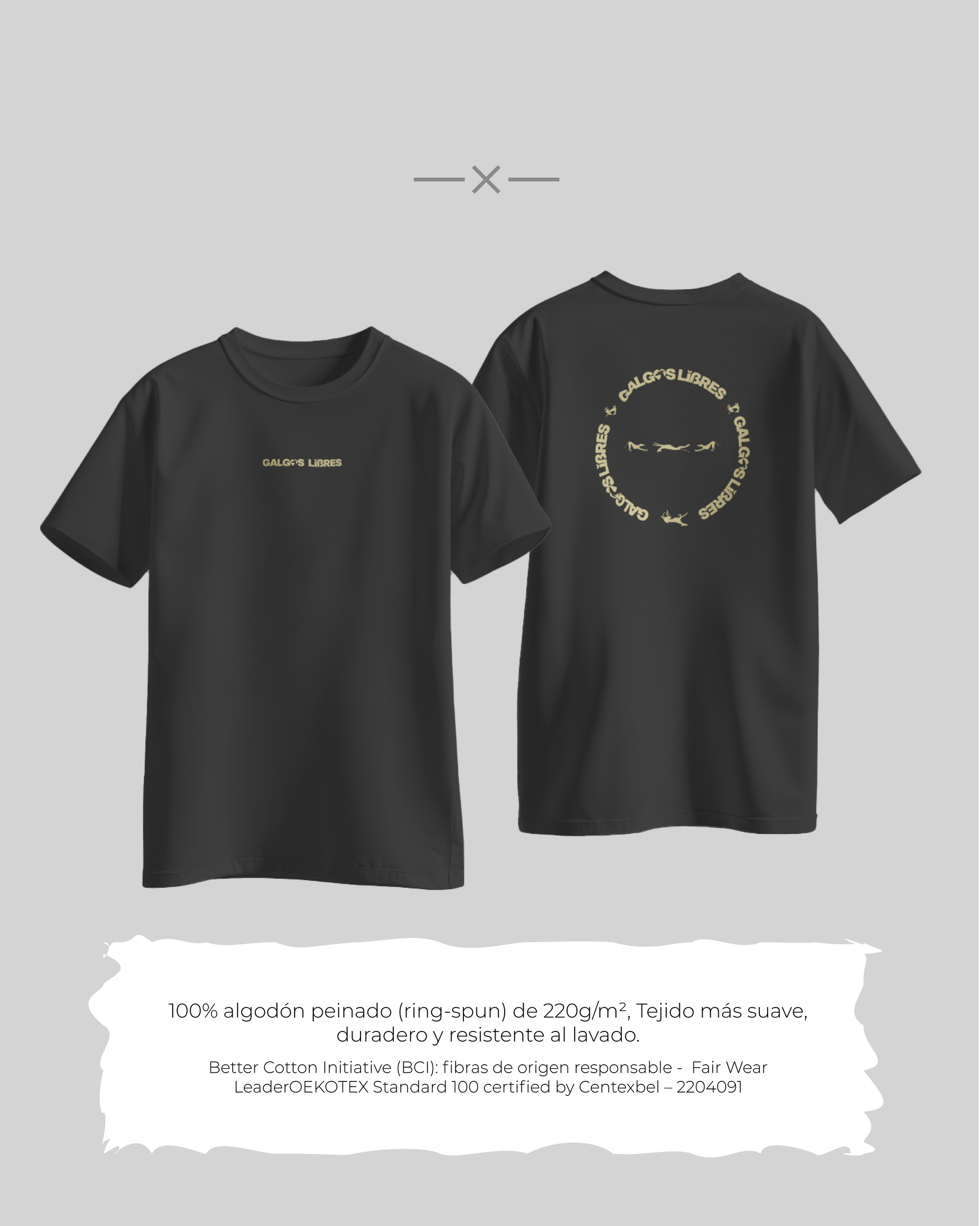 Un círculo de galgos felices & libres, símbolo de unión, esperanza y amor infinito. Una de sus mangas lleva el mantra que guía a nuestra manada: Rescata 🖤Ama 🖤 Repite.
